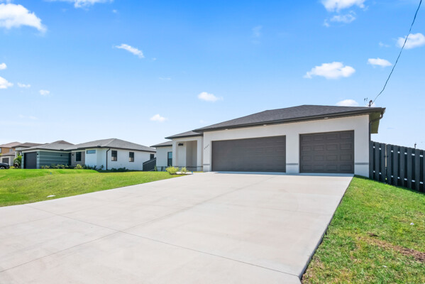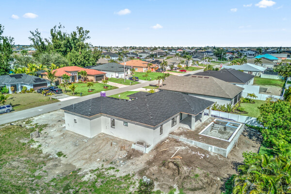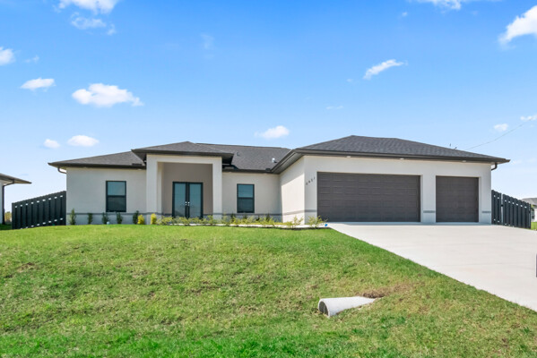 NO FLOOD INS REQUIRED for this BRAND NEW modern home located in the prestigious Unit 58 west of Burnt Store RD. Built higher than required to eliminate the cost of flood insurance! BRAND NEW with impact windows and many upscale features! Under Construction in one of the most preferred neighborhoods south of Embers Pkwy and west of Burnt Store Rd that has many neighboring Gulf Access upscale homes. Higher elevation eliminates flood insurance! City Utilities are in! People LOVE this location also because it's walking distance to multiple city parks (Joe Stonis/Sirenia Vista/Tropicana under construction), the Burnt Store Boat Ramp is about a 1/2 mile away, Publix/Walgreens nearby, easy access to I-75 via Burnt Store Rd going north in Punta Gorda or south in Ft Myers, the neighborhood is newer homes and more. In addition to being 4/2/3, this home features a pool, and the 4th bedroom can be your private office, playroom, or den. Its design perfectly marries modern luxury with comfort, offering a sanctuary that you'll be proud to call home. As you step inside, you'll be greeted by a light-filled open floor plan that seamlessly blends the living, dining, and kitchen areas. The gourmet kitchen is a showstopper with top-of-the-line stainless steel appliances, upscale countertops, and custom cabinetry, making it a chefs paradise. Many cabinets for lots of storage. The master suite is a private haven, complete with a walk-in shower and dual vanities. The additional bedrooms are generously sized, providing ample space for family or guests. Outside, the allure continues with a stunning private poolperfect for cooling off on hot Florida days or entertaining guests. The three-car garage provides abundant storage and parking space. As an option, the home can be beautifully enclosed with a brand new black shadow fence. Experience the best of SwFL living in this magnificent home that combines style, sophistication, and comfort. Some photos are from a similar home built by same builder. This home will have many upgrades that may not appear in photos including 8 ft sliders, pavers, lots of storage, and more. Take a look! Estimated to be complete before Summer 2025!