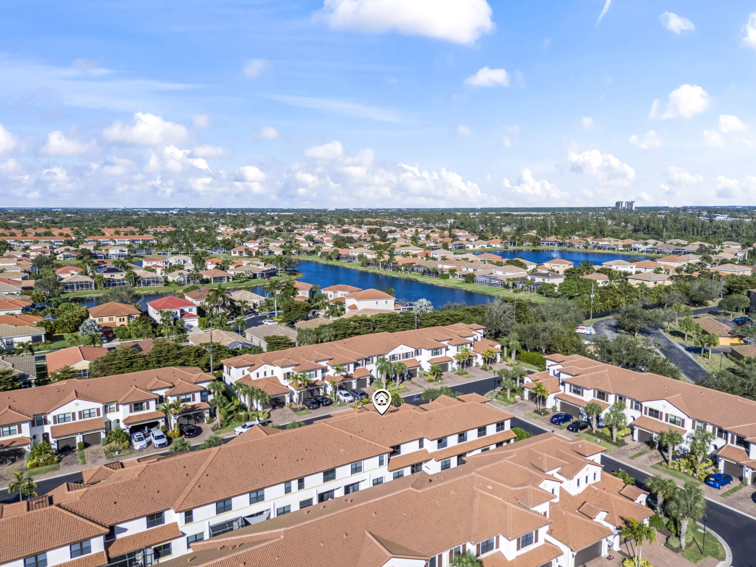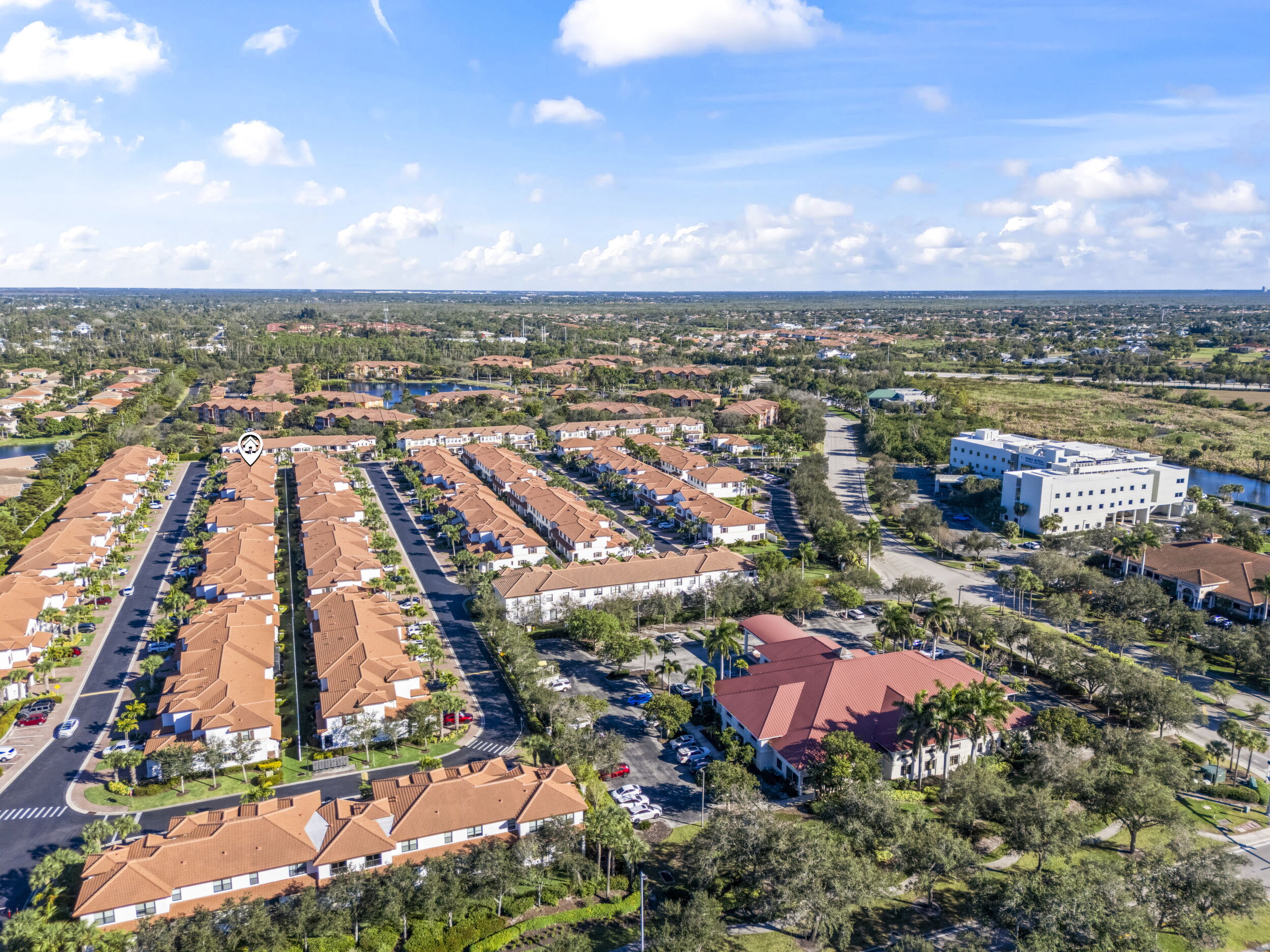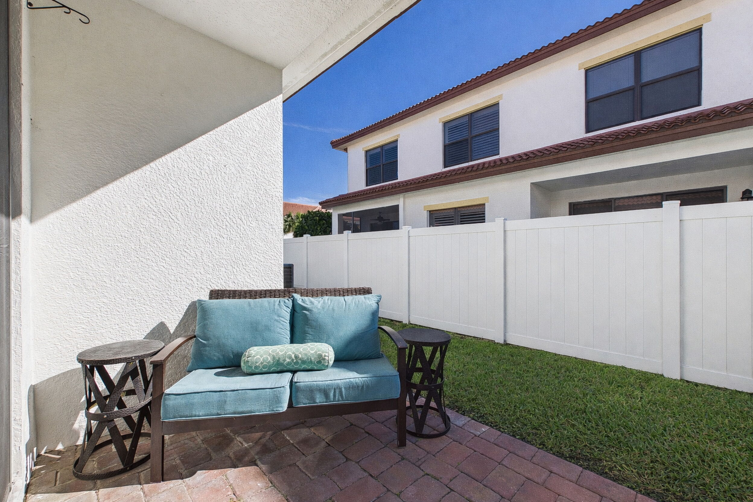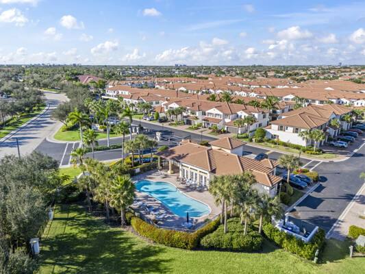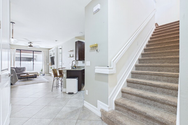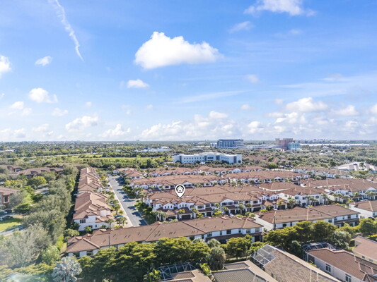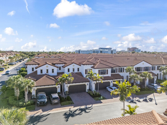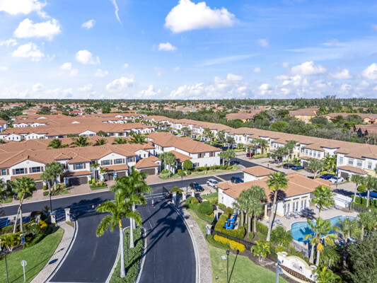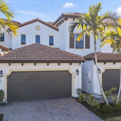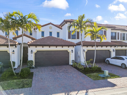 Welcome to Villa Medici-Florida living at its finest. This beautifully maintained, move-in-ready residence is nestled within the highly desirable gated community of Villa Medici, celebrated for its charming Italian-inspired architecture and resort-style amenities. Offering 3 bedrooms and 2.5 bathrooms, this spacious home features a thoughtfully designed floor plan with the primary suite conveniently located on the first floor, complete with a private en-suite bath. The downstairs living area is enhanced by custom built-in bookshelves, adding both warmth and functionality. The kitchen is well appointed with 42" wood cabinetry, granite countertops, and stainless steel appliances, and flows effortlessly into the main living space-ideal for everyday living and entertaining. Tile flooring extends throughout the foyer, kitchen, living room, and all bathrooms for both style and easy maintenance. Upstairs, you'll find a versatile family room/loft, two additional bedrooms, and a full bath-perfect for guests, a home office, or a private retreat. The upstairs family room and bedrooms are comfortably carpeted, creating a cozy and inviting atmosphere. A standout feature of this home is the rarely available two-car garage, a true bonus in Villa Medici. The garage offers abundant storage, including overhead storage racks above the garage door, and is equipped with a high-quality "Skeeter Beater" screen, allowing the space to easily double as a screened outdoor living or entertaining area. Residents enjoy access to a clubhouse and resort-style pool, while the HOA provides exceptional value, covering water, sewer, trash pickup, landscaping, irrigation, exterior maintenance, pest control, gated entry, and cable with three boxes. Flood insurance is transferable, providing additional peace of mind. This home is truly move-in ready-ideal for seasonal or year-round Florida living.