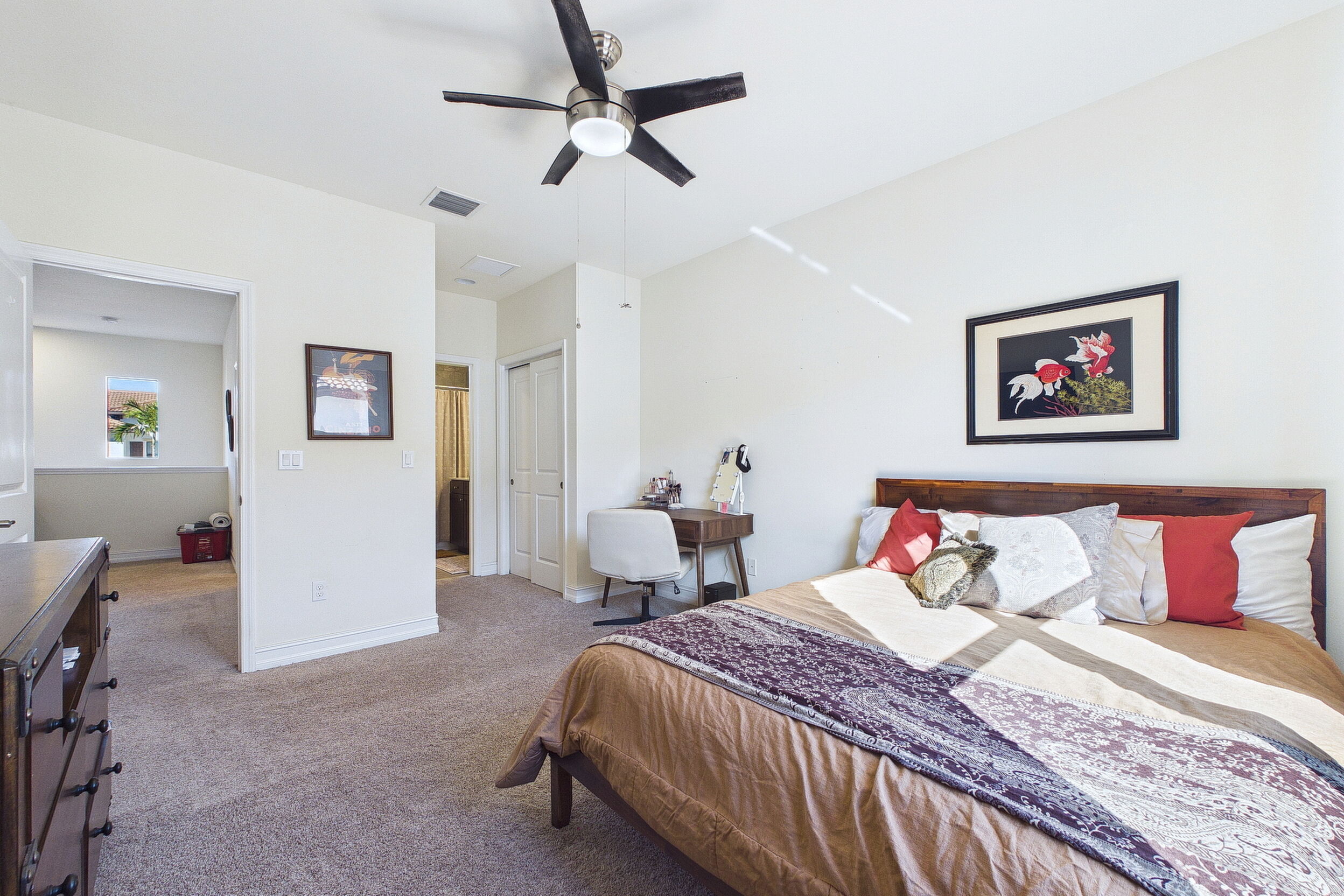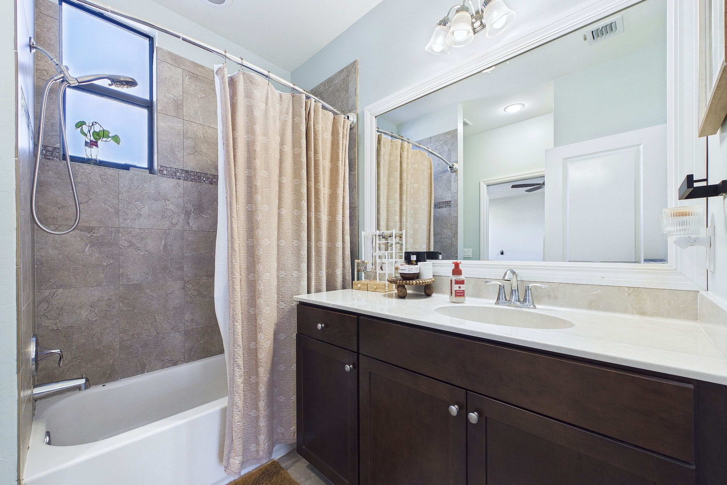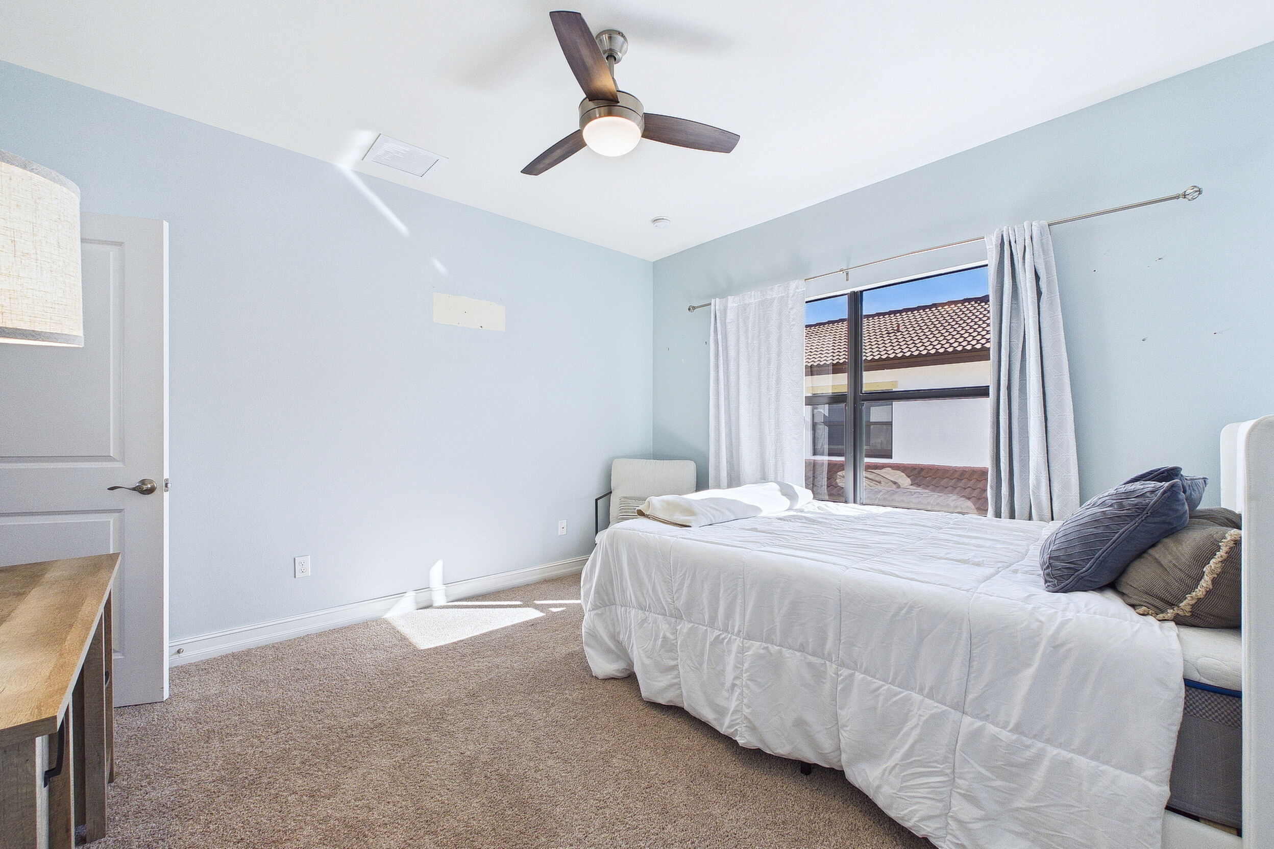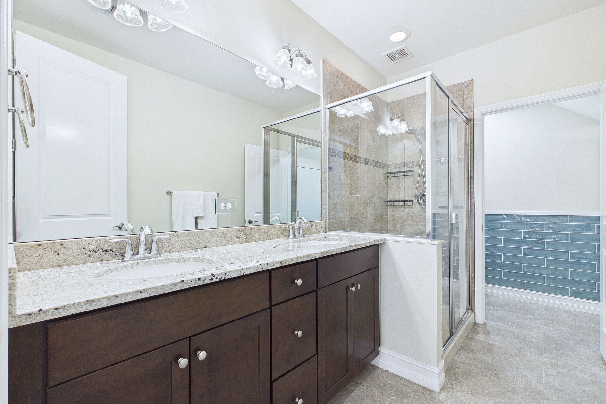 Welcome to Villa Medici-Florida living at its finest. This beautifully maintained, move-in-ready residence is nestled within the highly desirable gated community of Villa Medici, celebrated for its charming Italian-inspired architecture and resort-style amenities. Offering 3 bedrooms and 2.5 bathrooms, this spacious home features a thoughtfully designed floor plan with the primary suite conveniently located on the first floor, complete with a private en-suite bath. The downstairs living area is enhanced by custom built-in bookshelves, adding both warmth and functionality. The kitchen is well appointed with 42" wood cabinetry, granite countertops, and stainless steel appliances, and flows effortlessly into the main living space-ideal for everyday living and entertaining. Tile flooring extends throughout the foyer, kitchen, living room, and all bathrooms for both style and easy maintenance. Upstairs, you'll find a versatile family room/loft, two additional bedrooms, and a full bath-perfect for guests, a home office, or a private retreat. The upstairs family room and bedrooms are comfortably carpeted, creating a cozy and inviting atmosphere. A standout feature of this home is the rarely available two-car garage, a true bonus in Villa Medici. The garage offers abundant storage, including overhead storage racks above the garage door, and is equipped with a high-quality "Skeeter Beater" screen, allowing the space to easily double as a screened outdoor living or entertaining area. Residents enjoy access to a clubhouse and resort-style pool, while the HOA provides exceptional value, covering water, sewer, trash pickup, landscaping, irrigation, exterior maintenance, pest control, gated entry, and cable with three boxes. Flood insurance is transferable, providing additional peace of mind. This home is truly move-in ready-ideal for seasonal or year-round Florida living.
