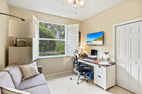 Living the Naples lifestyle in this well-maintained first-floor carriage home at Lely Resort sounds absolutely delightful. With a 2-car garage, 2 bedrooms, 2 baths, plus a den, it offers both comfort and versatility. The proximity to the pool, spa, gym, and community room makes everyday living convenient and enjoyable. Imagine starting your day with a cup of coffee on the lanai, soaking in the beauty of Alden Woods and its serene gated community ambiance. It's the perfect way to unwind and appreciate the natural surroundings before diving into your day. The newer AC and under sink water treatment system are certainly valuable additions, ensuring both comfort and peace of mind. With these features in place, you can relax knowing that your home is equipped to maintain a comfortable temperature and provide clean, fresh water for daily use. The kitchen sounds like a chef's dream with its stainless steel appliances, granite countertops, and beautiful soft-close cabinets and drawers. These high-quality finishes not only add to the aesthetic appeal but also enhance the functionality and durability of the space. Whether you're preparing a gourmet meal or simply enjoying a quick snack, this well-appointed kitchen is sure to impress. Additionally, the combination of wood and tile flooring throughout the residence adds to its charm and elegance. Not only are these materials visually appealing, but they're also easy to clean and maintain, making them both practical and stylish choices for a home in Naples. The amenities at Lely Resort, particularly the Players Club and Spa, truly elevate the living experience. From the poolside tiki bar to the resort-style pool, fitness center, and tennis courts, theres something for everyone to enjoy. Two restaurants, a full-service spa and salon only add to the luxurious lifestyle. Golf enthusiasts have the option of 3 championship golf courses, 2 public and 1 private. The location is also unbeatable, with easy access to Downtown Naples, Marco Island, and Gulf Beaches. Plus, the potential for seasonal rentals adds flexibility and investment opportunities. Overall, this carriage home offers the perfect blend of convenience, comfort, and Naples-style luxury. It's a place where you can truly embrace the laid-back yet sophisticated lifestyle that Naples is known for.